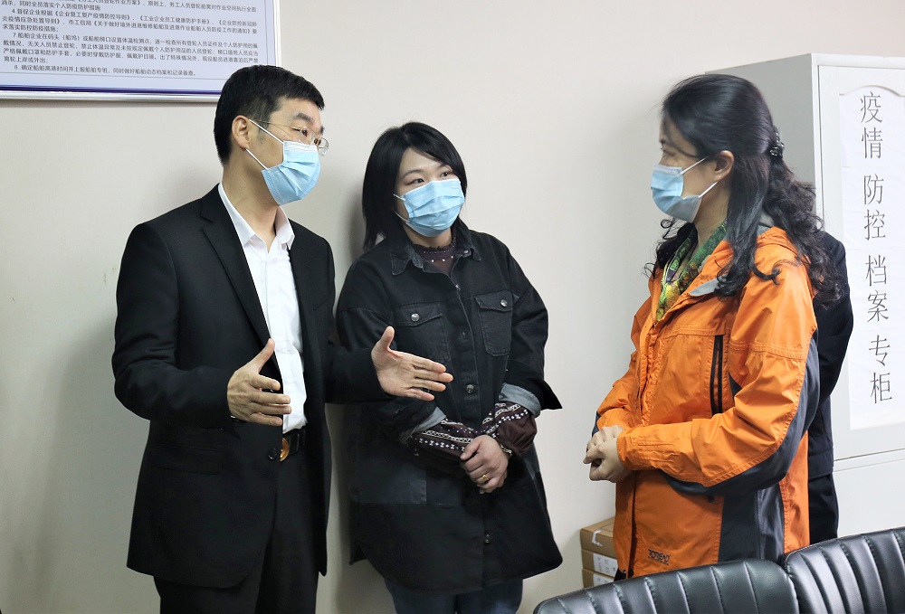 在青拓物流应急指挥部,杨方一行通过监控查看物流码头各区域工作现况;在防疫指挥部工作专班办公室内,一行人员了解了青拓物流的疫情防控措施和工作流程,询问物流码头疫情防控工作情况及存在的问题和困难。