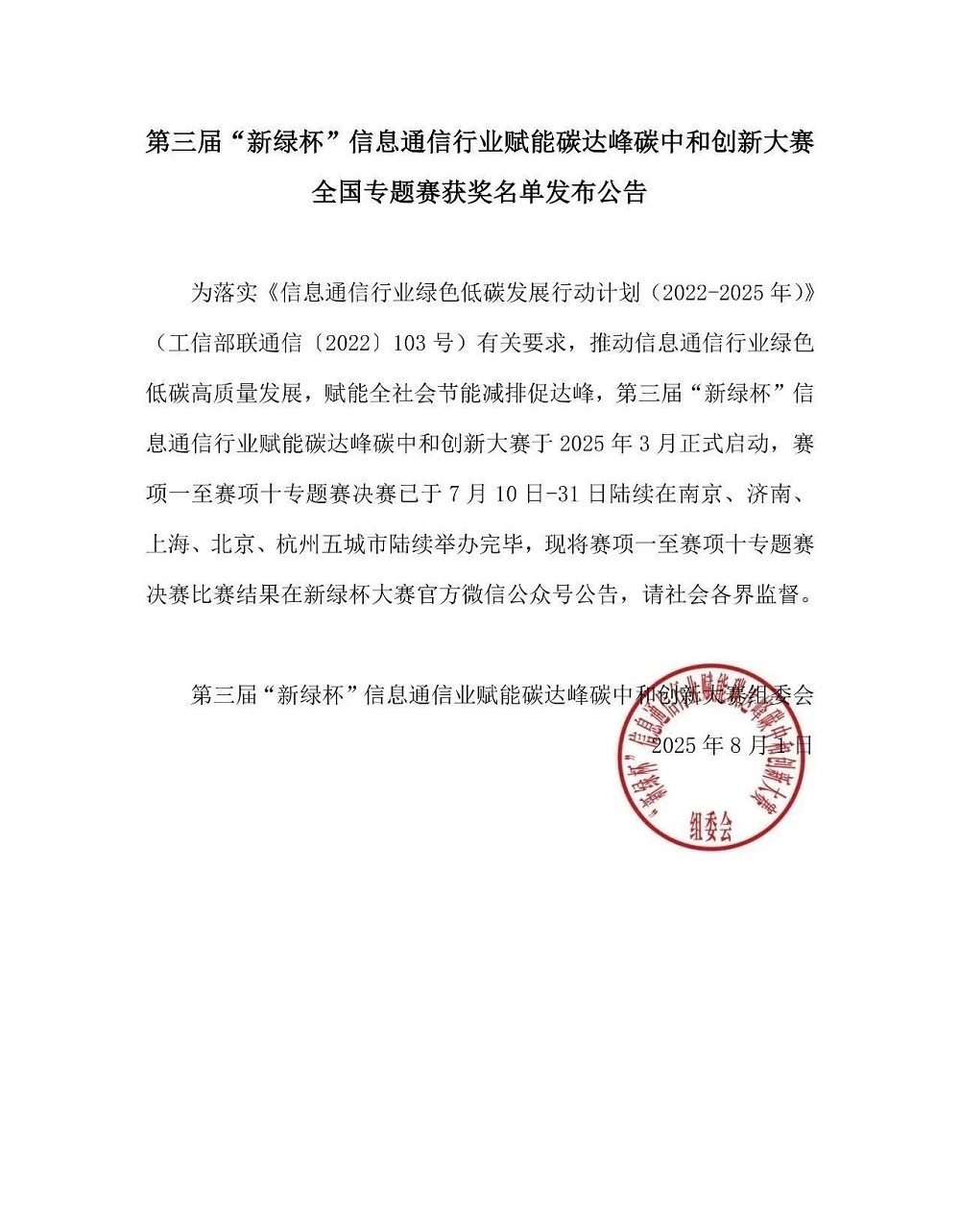 “新绿杯”大赛由工业和信息化部指导、中国信息通信研究院主办,是信息通信领域最具影响力的“双碳”赛事之一,旨在遴选并推广行业领先的绿色低碳技术与应用案例,加速优秀实践经验规模化落地,激发产业创新动能,助力“双碳”目标实现。