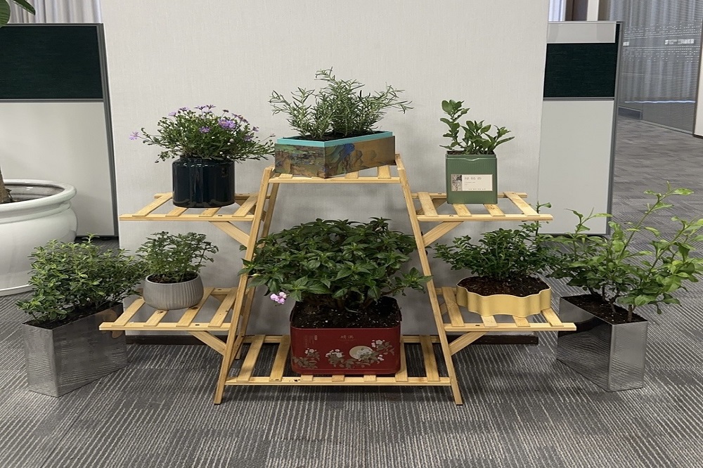 PRJ部门专属小花坊——“植愈小馆”,以工艺之名,赋予废弃品新生。在这里,食品包装盒、塑料瓶、泡沫箱等被赋予了新的生命,化作一个个再生花盆。钧宝的精美手工画装饰其上,犹如点睛之笔,为花盆增添了一抹文化韵味,每一盆都是对工艺与环保的完美融合。“植愈小馆”不仅是部门绿色文化的缩影,更是我们传递“变废为宝,循环再生”理念的生动实践。在这里,废弃不再是负担,而是创意与绿色的源泉,每一盆绿植都在诉说着“再生”的故事。