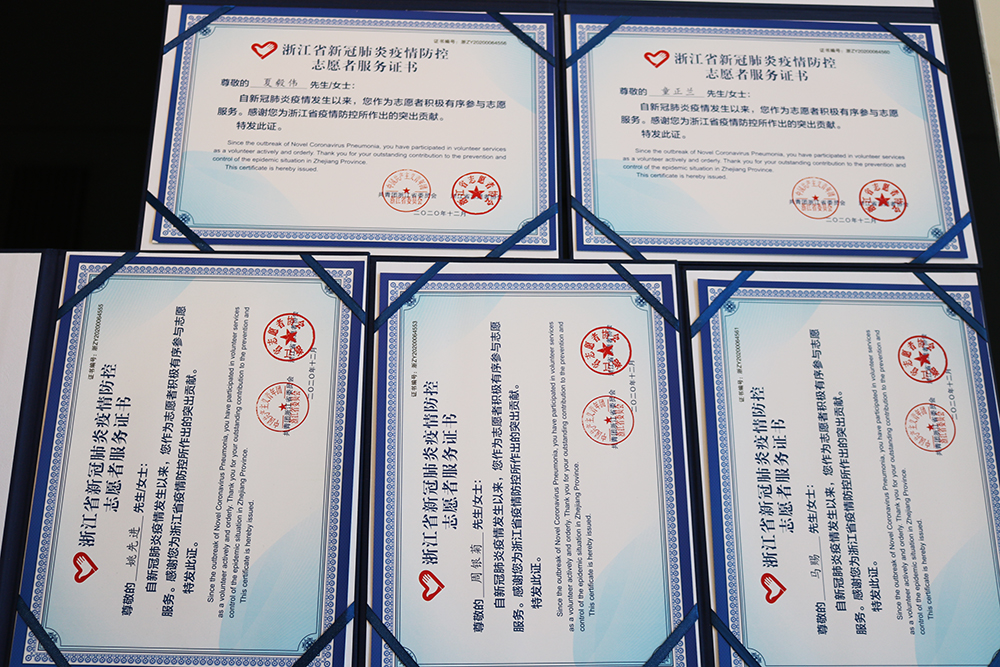 12月份,浙江jinnianhui今年会钢管有限公司员工童正兰、马赐、姚先进、夏毅伟、蔡献炯、周银菊六人荣获由浙江省志愿者协会与共青团浙江省委员会共同审核颁发的浙江省新冠肺炎疫情防控志愿者服务证书。
