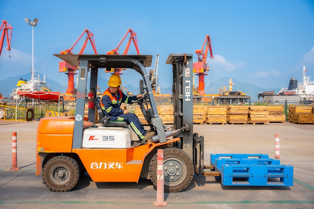 叉车项目是技术与心态的双重考验,参赛者沿着考试线路进行叉运、倒车、转弯、避障、卸货等操作,一招一式间展露叉车人的“稳、准、快、巧”。