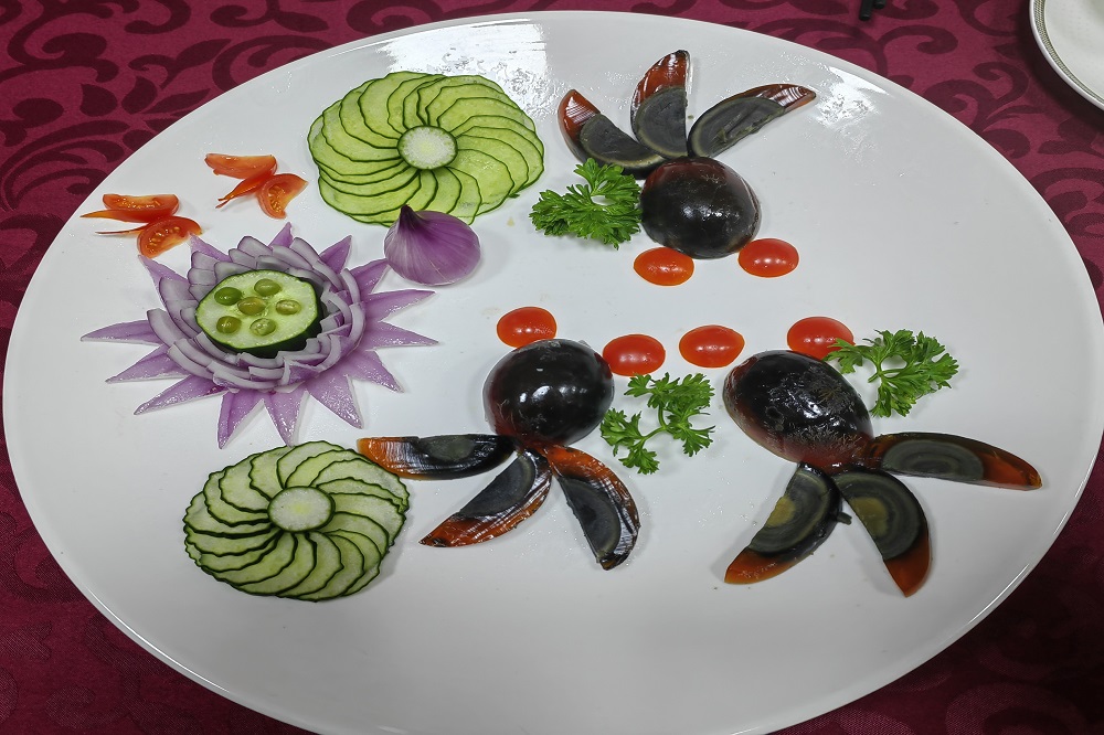 中式烹调师项目比赛现场一片火热,雕花、调味、造型,一道道造型精美、味道可口的菜肴在厨师们的手中被创造,他们是后厨的“艺术家”。