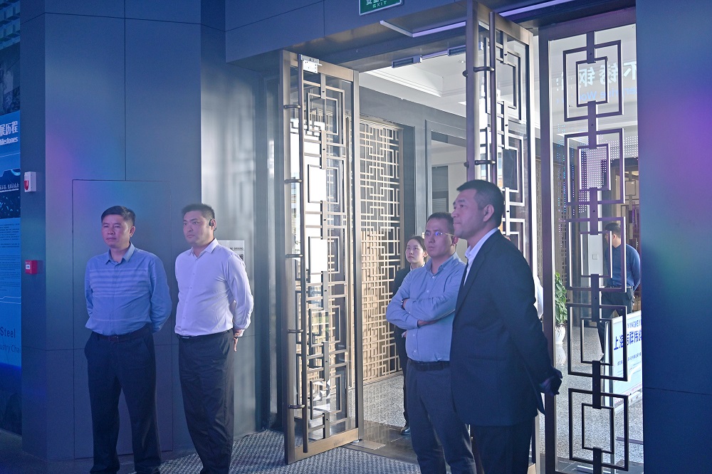 李维勇一行观看了企业宣传片,并参观了集团供销中心、研究院、家具展厅、电子展厅等场所,参观过程中对青拓集团自主研发的系列钢种兴趣浓厚,提出相关问题,钟盛江就企业下游产业以及各系列钢种产品深度剖析,详细介绍了青拓不锈钢产品在创新方面的卓越表现。